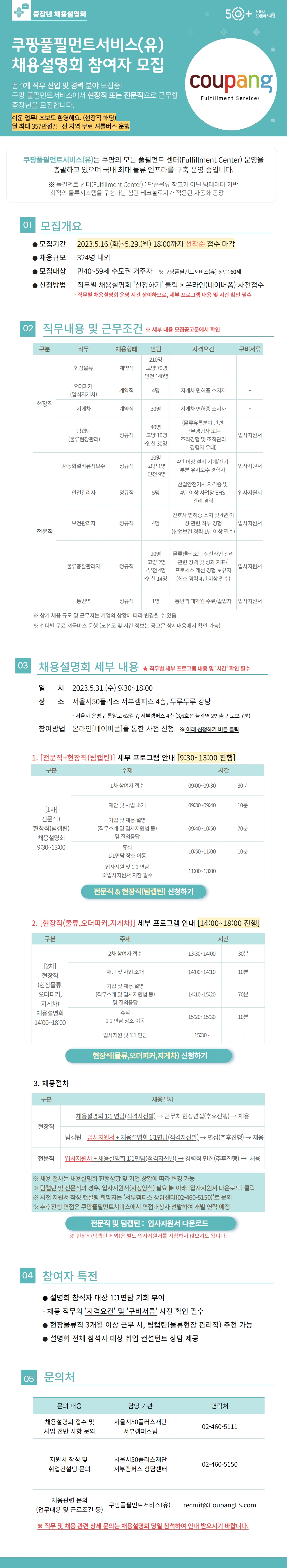 가. 사 업 명: 쿠팡풀필먼트서비스(유) 중장년 채용설명회