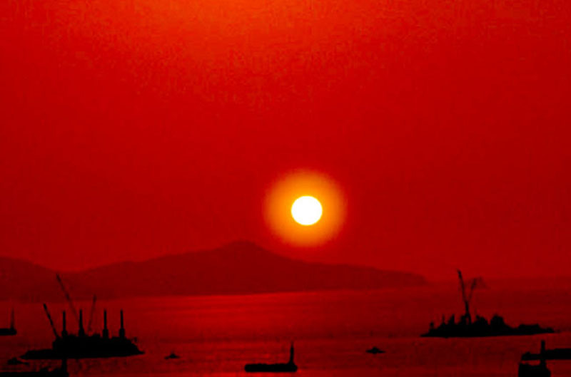 일몰하는 서해의 낙조의 비경을 보는 순간 누구나