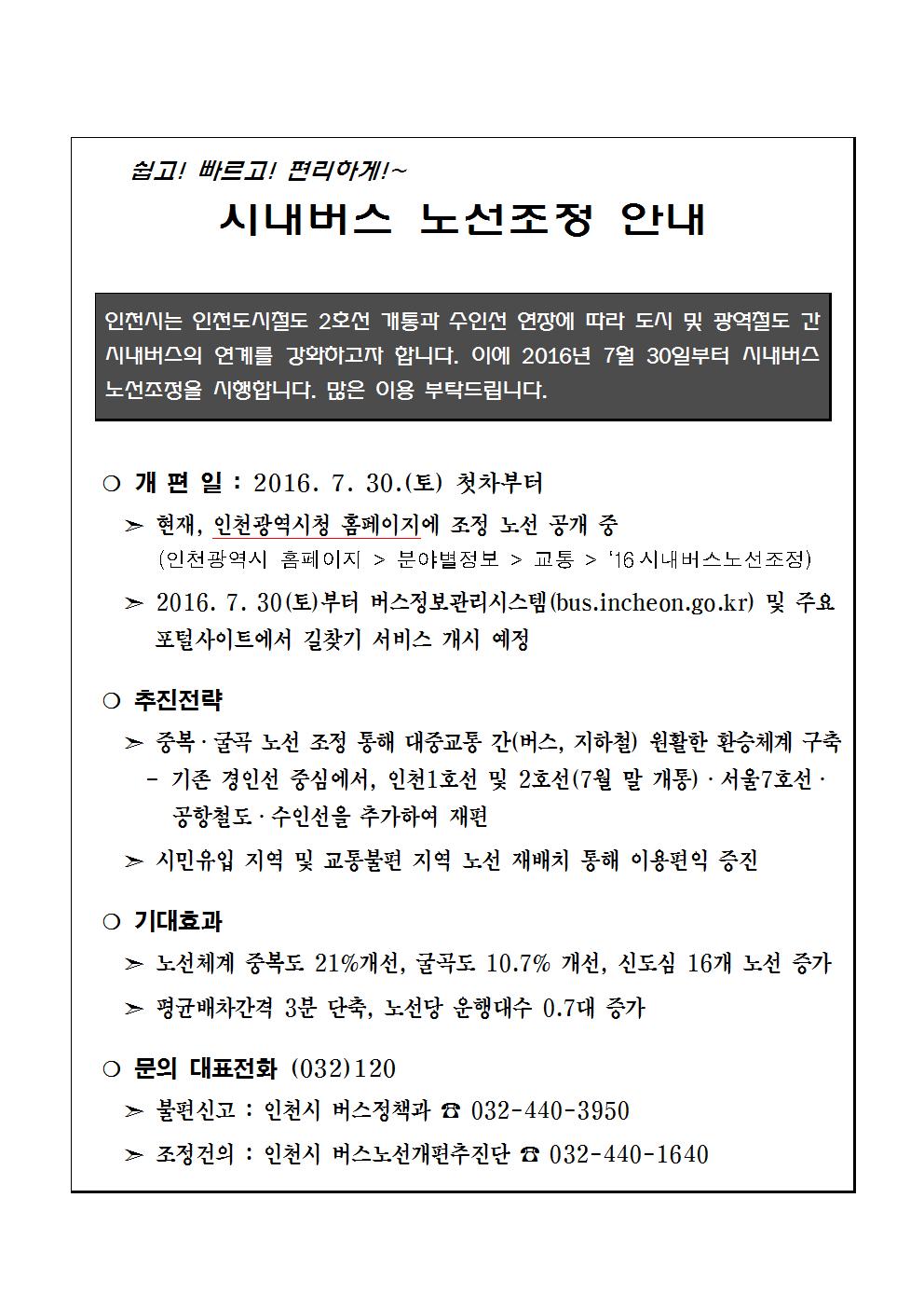 2016. 인천 시내버스 노선조정 안내