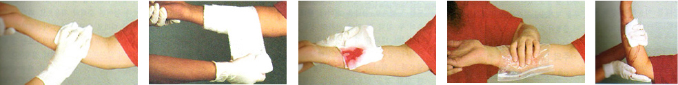 - 상처에 직접 붕대를 하지 않는다(상처 부위는 소독된 드레싱을 한 후 붕대를 감는다).